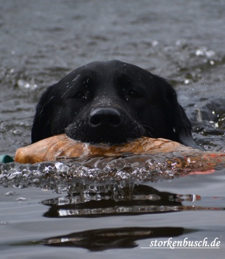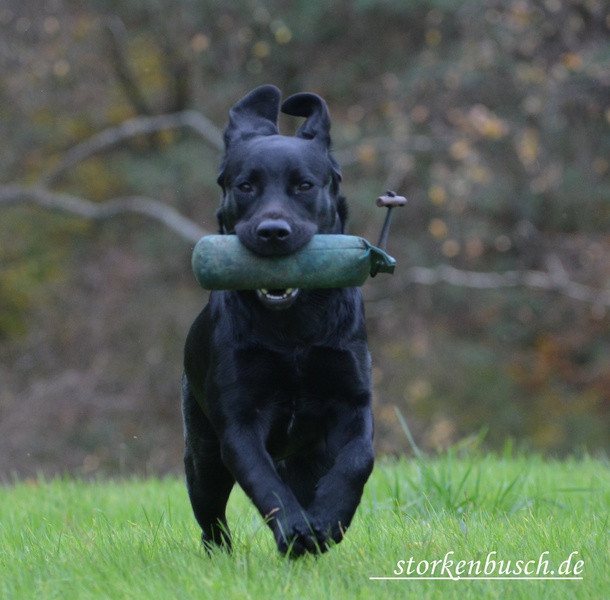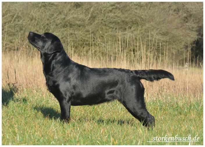 Die erst 8 Monate alte Hündin hat eine schöne Bindung zur Besitzerin. Fremde werden aufgeschlossen und spielfreudig begrüßt. Auf dem Parcours untersucht sie völlig unbeeindruckt. Beute- und Bringtrieb sind prima ausgebildet. Auf die Schüsse reagiert sie unerschrocken und neugierig. Insgesamt eine vielversprechende, junge Hündin mit sehr guten Wesenseigenschaften.