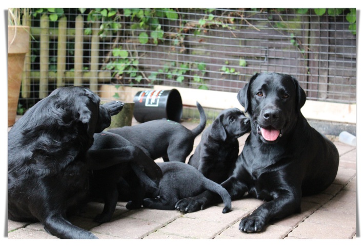 Nach fast 3 Jahren welpenloser Zeit wurde die Wurfkiste im Storkenbusch endlich wieder mit Leben gefüllt. Unser K-Wurf kam am 17. März 2025 zur Welt. Es sind ein schwarzer und ein gelber Rüde und eine schwarze und zwei gelbe Hündinnen. Drei Welpen wurden leider tot geboren.