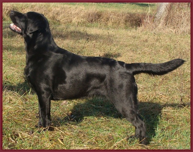 10 Monate alte schwarze Hündin mit schönem Kopf mit guter Stoplänge, vorzüglicher Halsansatz und Oberlinie, etw. tiefer Rutenansatz, sehr gute Pfoten- u. Knochenstärke, sehr gute Winkelungen vorne und vorzügliche Winkelungen hinten, tiefe und breite Brust, sehr gutes Gankwerk.