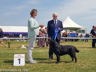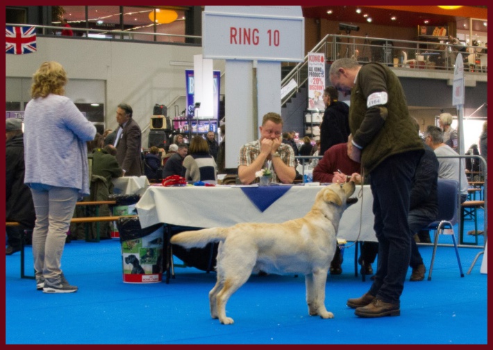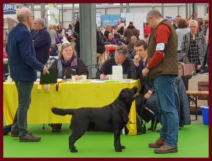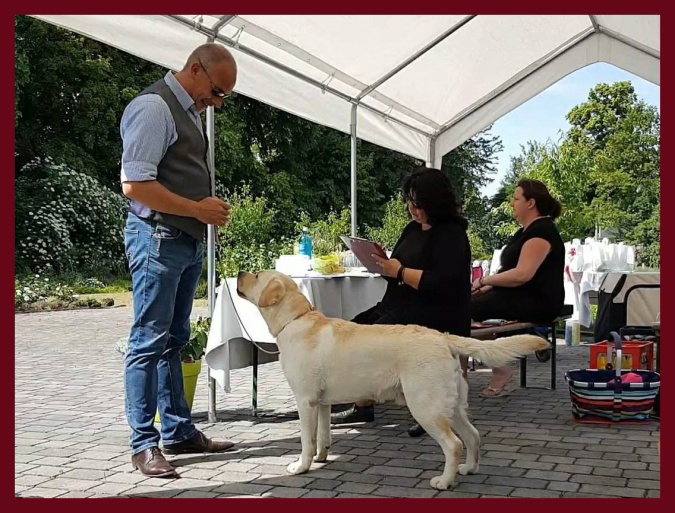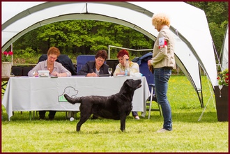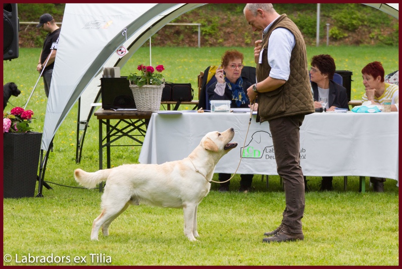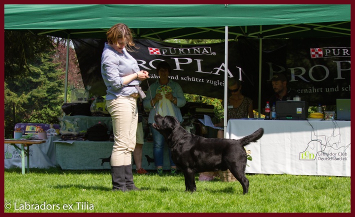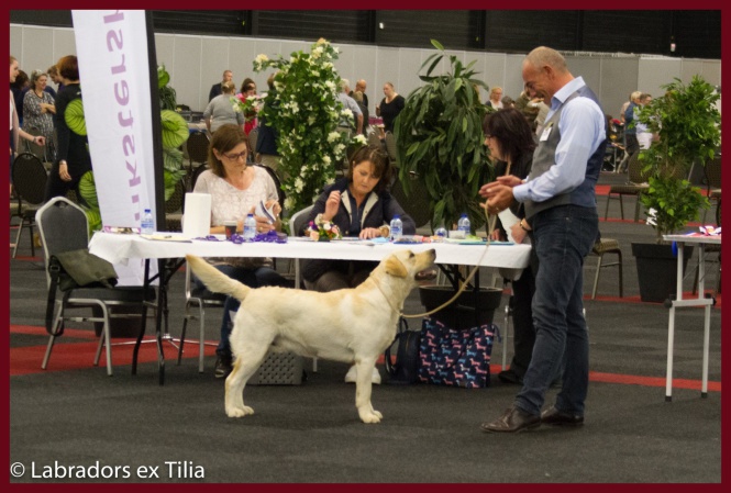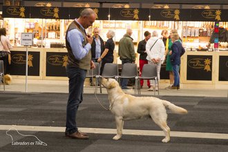 Endeavour Morse vom Storkenbusch wird von seinem Bestzer Ron Paans zum Formwert vorgestellt und erhält von Richterin Tanja Nordhues die Bestnote "vorzüglich". Herzlichen Glückwunsch ins Kennel Labradors ex Tilia.