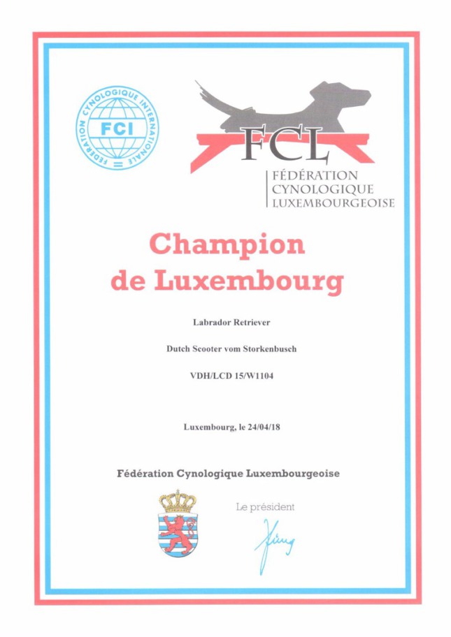 Der Kracher am gesamten Wochenende war dann die phantastische Neuigkeit, dass Dutch Scooter vom Storkenbusch nun auch den Titel "Champion de Luxembourg" tragen darf. Wow!