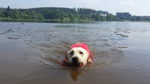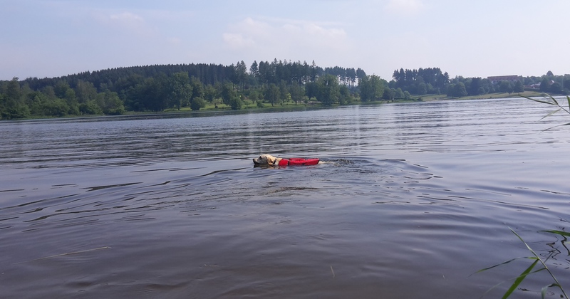 Der perfekte Schwangerschaftssport ist bekanntlich Schwimmen und so findet man uns derzeit mehr als üblich an nahegelegenen Gewässern, in denen June genüsslich ihre täglichen Runden dreht. Ungeachtet dessen, ist ihr größter Spaß derzeit das Fressen. June fühlt sich bereits 'hochschwanger' und würde auch locker die doppelten Portionen verschlingen. Heute beginnt die 7. Trächtigkeitswoche und während unserer Spaziergänge watschelt sie ein wenig unelegant daher. Wir sind furchtbar gespannt, was June und Brian 'gebastelt' haben und freuen uns riesig auf den Tag, an dem June`s Babies ihren Ort der Bestimmung hoffentlich wohlbehalten erreichen.