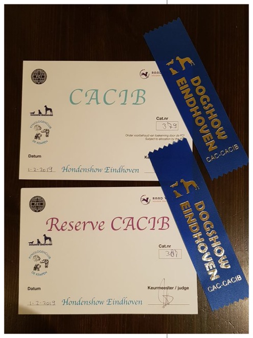 Zwei phantastische Ergebnisse konnten CH Dutch Scooter vom Storkenbusch und JCH Endeavour Morse vom Storkenbusch auf der Internationalen Dogshow in Eindhoven erzielen. Riley gewinnt die Championklasse und erhält im Anschluss das Reserve CACIB. Indy wird erstmals in der Offenen Klasse vorgestellt, gewinnt diese ebenfalls und erhält zu unserer großen Freude auch das CACIB.
