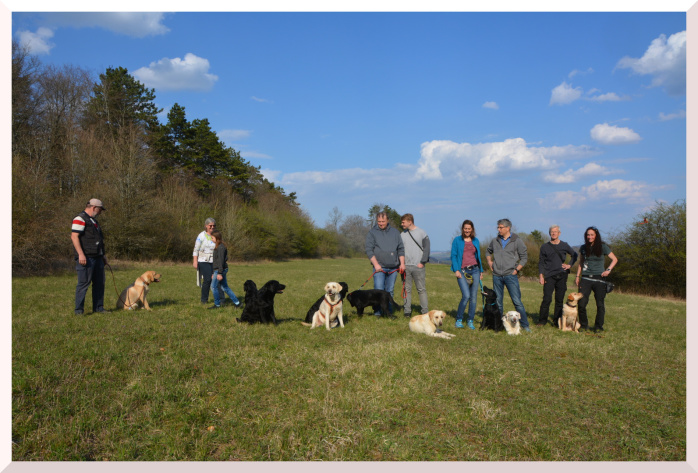 Reichlich Input erhielten die Seminarteilnehmer beim Workshop mit Klaus Karrenberg "Das andere Ende der Leine". 11 Mensch-Hund-Teams hatten sich angemeldet, um ihren Horizont über das Wesen des Hundes, seine Ausdrucksweise und sein Lernverhalten zu erweitern. In Theorie und Praxis erlebten die Teilnehmer viele Aha-Effekte und konnten dadurch einen ganz neuen Blickwinkel für das Wesentliche im Umgang mit ihrem Hund bekommen. Wetter, Verpflegung und gute Laune waren top und so lautete am Ende der allgemeine Tenor: eine Fortsetzung muss unbedingt folgen. Wir verbrachten ein wunderschönes Wochenende mit Gleichgesinnten und ihren Labradoren.