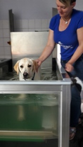 Hope geht lahm. Ein Ärztemarathon beginnt und ergab viele Wochen keine Klarheit. 3 Monate später erwischt uns die niederschmetternde Diagnose FCP "Fragmentierter Processus Coronoideus", eine wachstumsbedingte Erkrankung der Ellbogengelenke. Hope wird in einer Fachklinik arthroskopisch operiert. Aber auch 3 Monate nach der OP sollte Hope`s Leidensweg noch nicht zu Ende sein. Ihr Gangbild hat sich nicht verändert, zudem ist Gelenkflüssigkeit ausgetreten, ein weiteres Mal muss sie ins CT, was keinen Aufschluss ergibt. Erneut wird eine Arthroskopie angeraten. Wir lehnen ab. Neben dem Einsatz von Reha, Unterwasserlaufband, Laser-Therapie, Akupunktur, viel Schwimmtraining und Blutegel-Therapie suchen wir für Hope nach weiteren Lösungen, denn keine der Maßnahmen trägt zu ihrer Genesung bei. Ständiger Leinenzwang, kein Spielen, Rennen und Toben mit Artgenossen, unser Hundekind ist mittlerweile 9 Monate alt und muss seit Wochen und Monaten ausgebremst werden. Wenn das restliche Rudel um die Wette läuft, ist Mitmachen für Hope tabu.