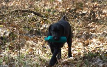 Doc Corner vom Storkenbusch besteht im Forstrevier Langenkopf die Bringtreueprüfung. Besitzer Andreas Berft behielt die Nerven und führte seinen Rüden souverän durch die Prüfung.