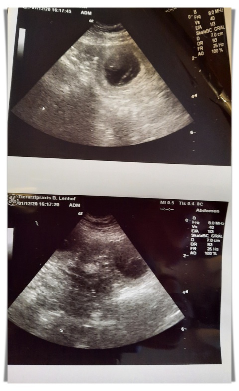 Unsere June gibt sich definitiv schwanger. Der große Hunger hat sich bereits eingestellt, sie ist die Ruhe selbst und befindet sich bereits im „Schongangmodus“. Bei der heutigen Ultraschalluntersuchung durften wir den I-Wurf erstmals besichtigen. Jetzt müssen wir uns noch bis Anfang Januar gedulden, um ihn auch 'live' zu erleben. Wir befinden uns in aktiver Vorfreude, zählen bereits die Tage und freuen uns!