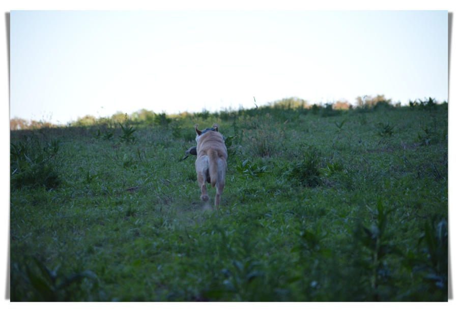 Das Foto zeigt "unseren" energiegeladenen E-Wurf Rüden Indy, bei dem Versuch eines schwungvollen Standbildes.