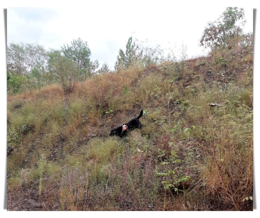 Bei dieser anspruchsvollen Prüfung muss der Hund innerhalb von 25 Minuten ein 20.000 bis 25.000 qm großes Gelände abstreifen bzw. abstöbern und 1 bis 3 versteckte Personen finden und seinem Hundeführer eindeutig anzeigen.